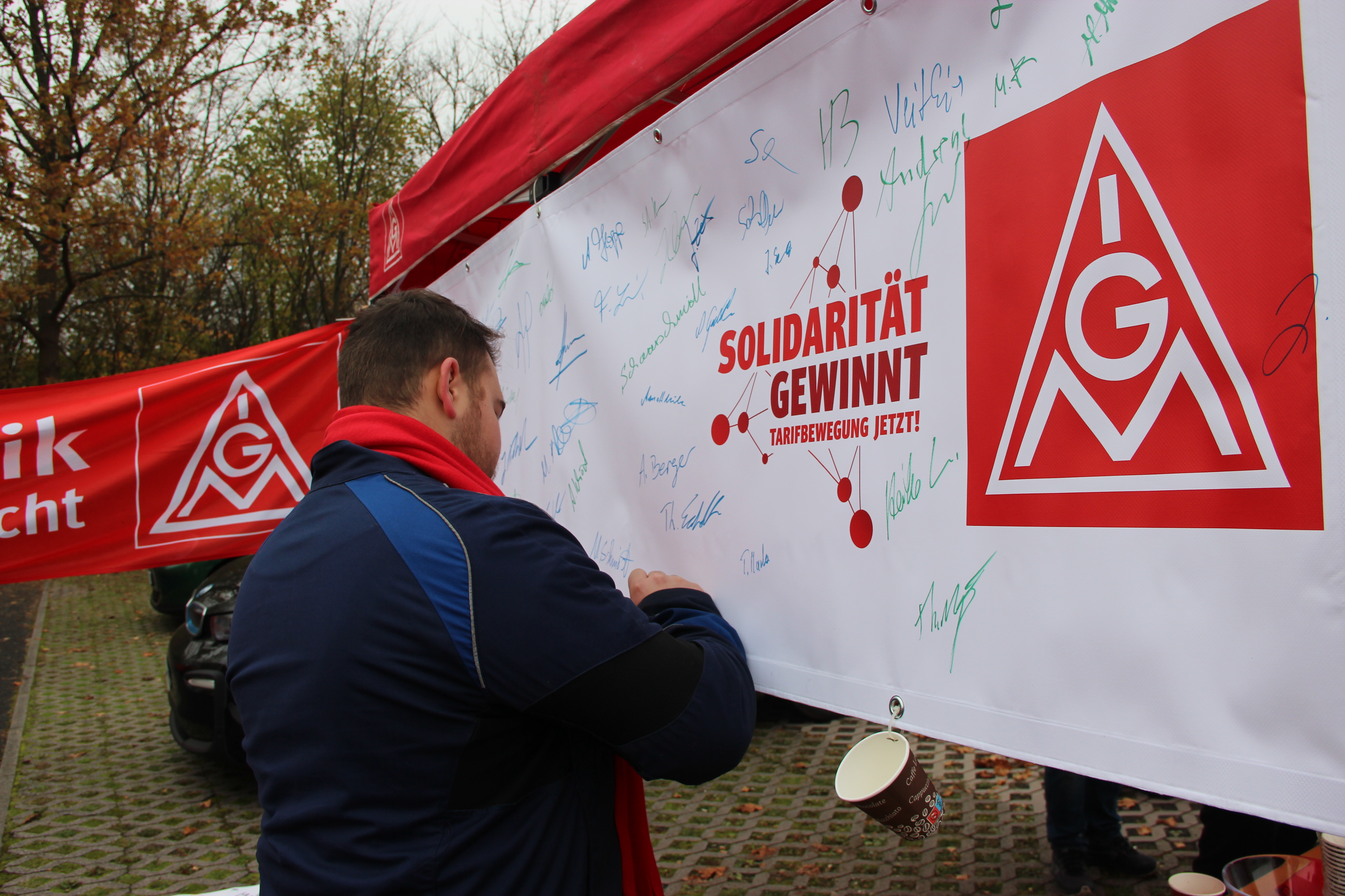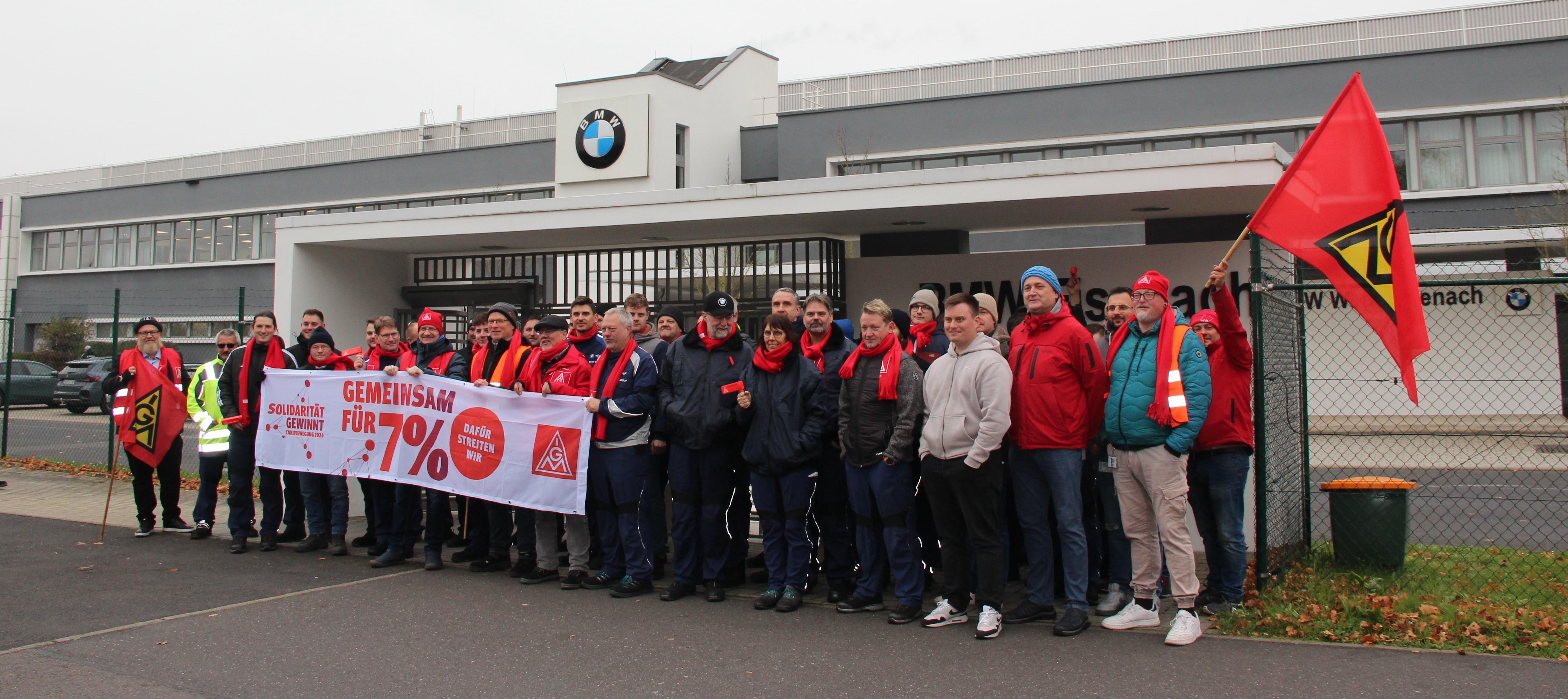 Nach Ablauf der Friedenspflicht rief die IG Metall am 2. November die Beschäftigten von BMW in Krauthausen zum Warnstreik für 7 Prozent mehr Entgelt für 12 Monate und überproportional 170 Euro mehr Ausbildungsvergütung auf. In den bisherigen drei Verhandlungen mit den Arbeitgebern konnte kein Ergebnis erzielt werden.