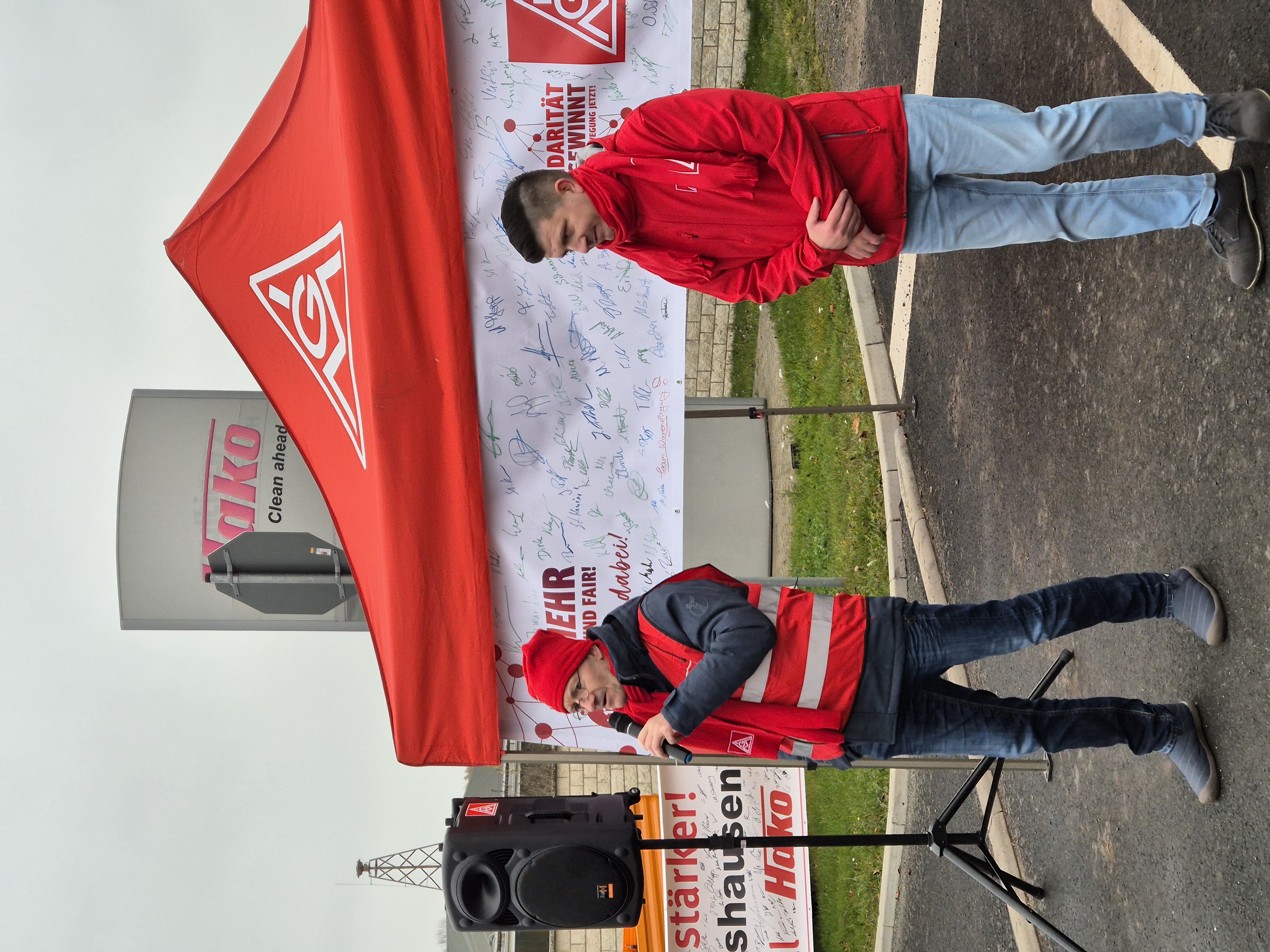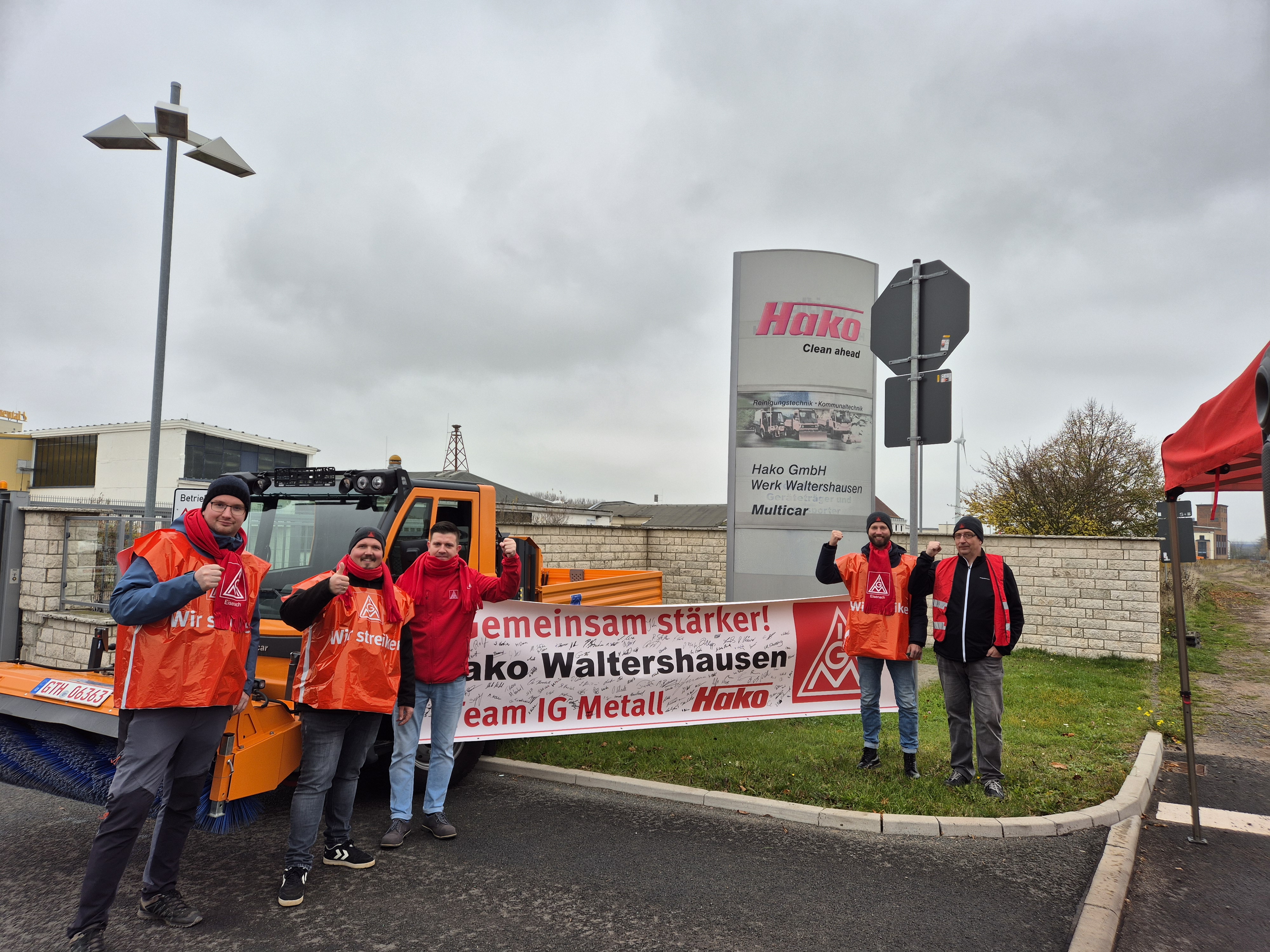 Nach Ablauf der Friedenspflicht rief die IG Metall am 8. November die Beschäftigten von Hako in Waltershausen zum Warnstreik für 7 Prozent mehr Entgelt für 12 Monate und überproportional 170 Euro mehr Ausbildungsvergütung auf. In den bisherigen drei Verhandlungen mit den Arbeitgebern konnte kein Ergebnis erzielt werden.