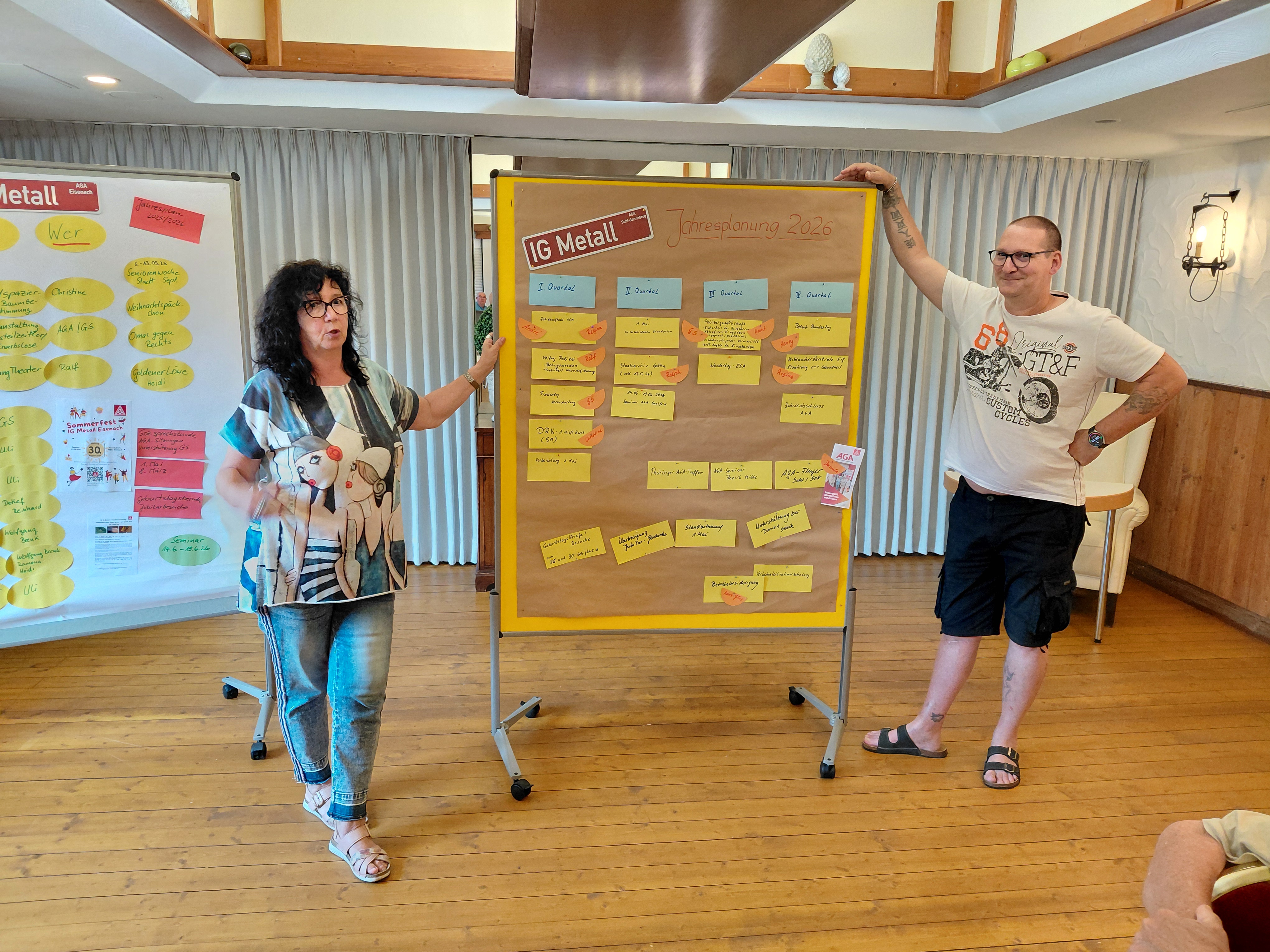 Neben der politischen Analyse stand die Frage im Mittelpunkt: Wie können wir die IG Metall-Arbeit vor Ort sichtbarer und wirksamer machen? In Kleingruppen wurden konkrete Maßnahmen entwickelt, darunter: