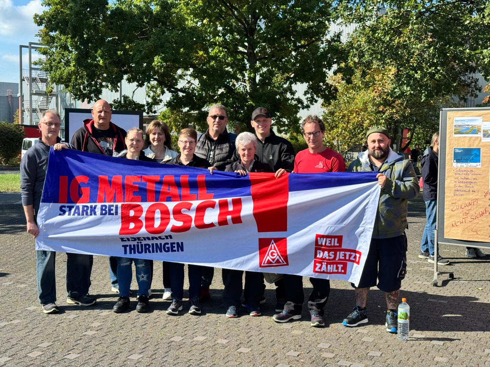 Am Dienstag haben die IG Metall Eisenach und der Betriebsrat am Bosch-Standort Eisenach einen gemeinsamen Informationsstand organisiert, um die Beschäftigten über die aktuellen Pläne des Unternehmens zum Stellenabbau zu informieren. Bosch hat angekündigt, bis zum Jahr 2030 weltweit rund 22.000 Arbeitsplätze zu streichen, davon etwa 13.000 in Deutschland.